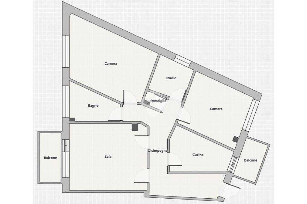 L'immobile è composto da cucina, sala, due camere, studio, un bagno, piccolo vano lavanderia e balconi.