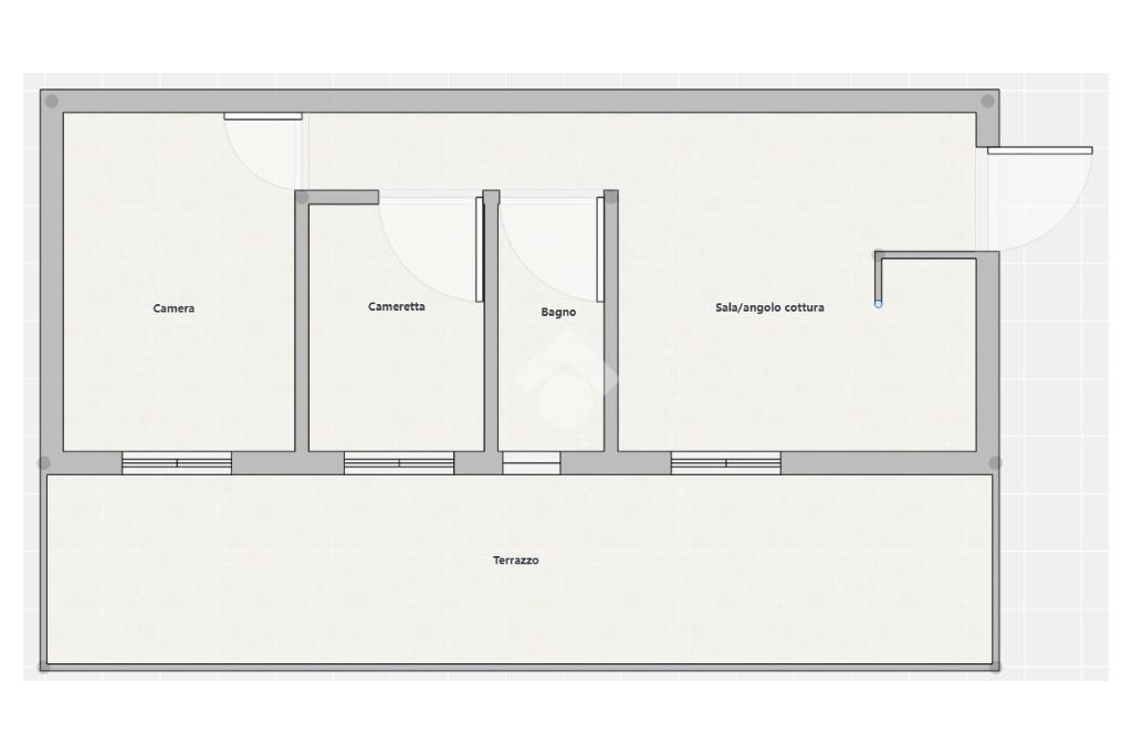 L’immobile è posto al primo piano in fabbricato senza ascensore ed è composto da ingresso, tinello, angolo cottura, due camere ed un ampissimo terrazzo. E’ inoltre dotato di posto in cortile condominiale recintato.