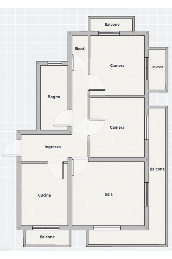 L'immobile, interamente balconato e con triplo affaccio gode di ottima esposizione e luminosità. E' composto da ampio ingresso, cucina abitabile, salone, due ampie camere da letto, un bagno e ripostiglio. Tutti gli ambienti sono balconati e la sala è dotata di aria condizionata.