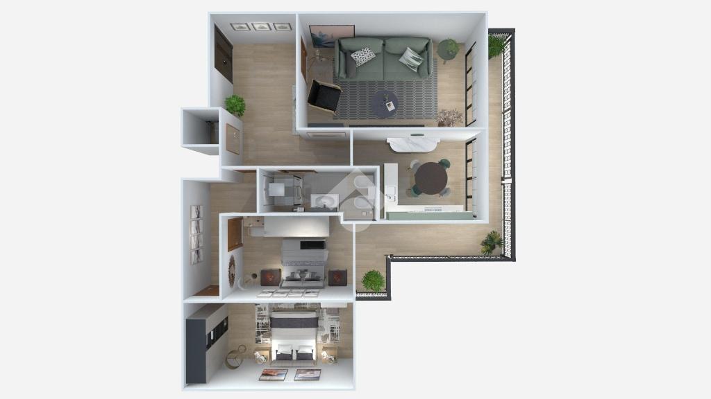 L'immobile offre spazi ben distribuiti e funzionali. E' composto da un ampissimo ingresso, sala, cucina abitabile, due camere, due bagni, interamnete balconato. Incluso un garage di circa 12 mq.