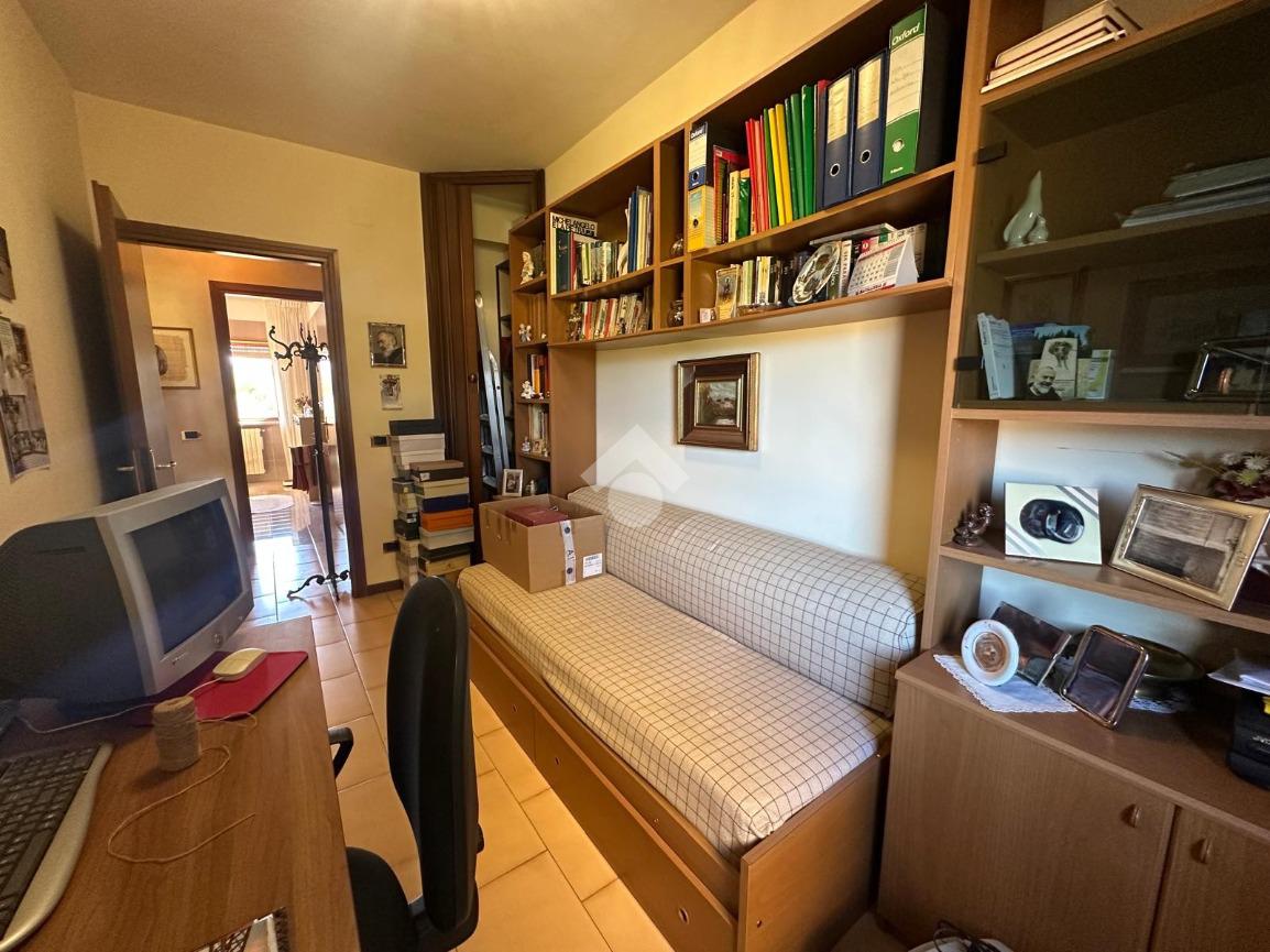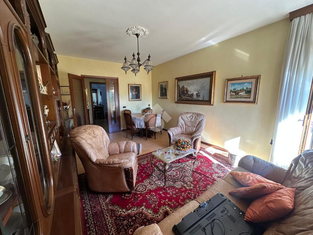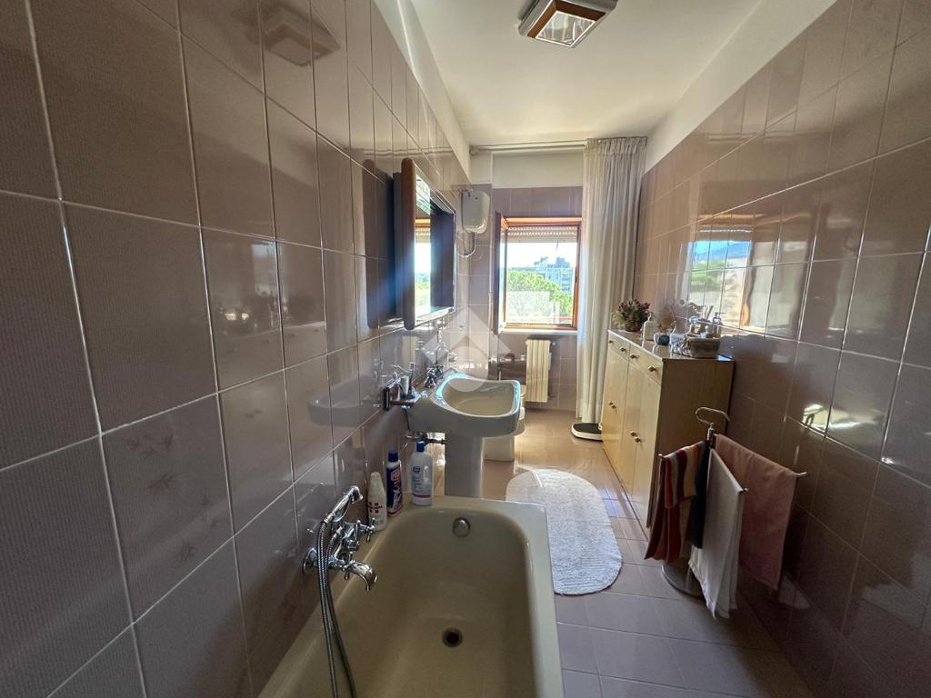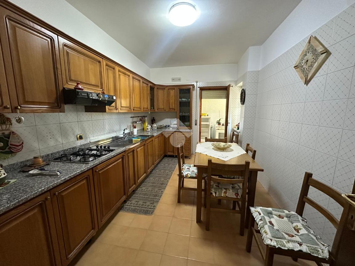 L'immobile si presenta luminoso e funzionale, si compone di ingresso, cucina abitabile con verandina, sala, tre camere, due bagni e balcone. Sono inclusi un posto auto ed un garage all'interno del cortile condominiale ed una cantina al piano terra del vano scala. Dotato di aria condizionata.