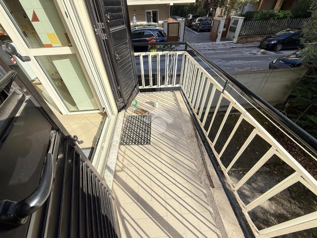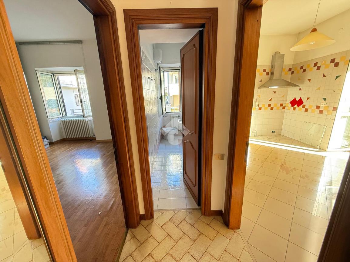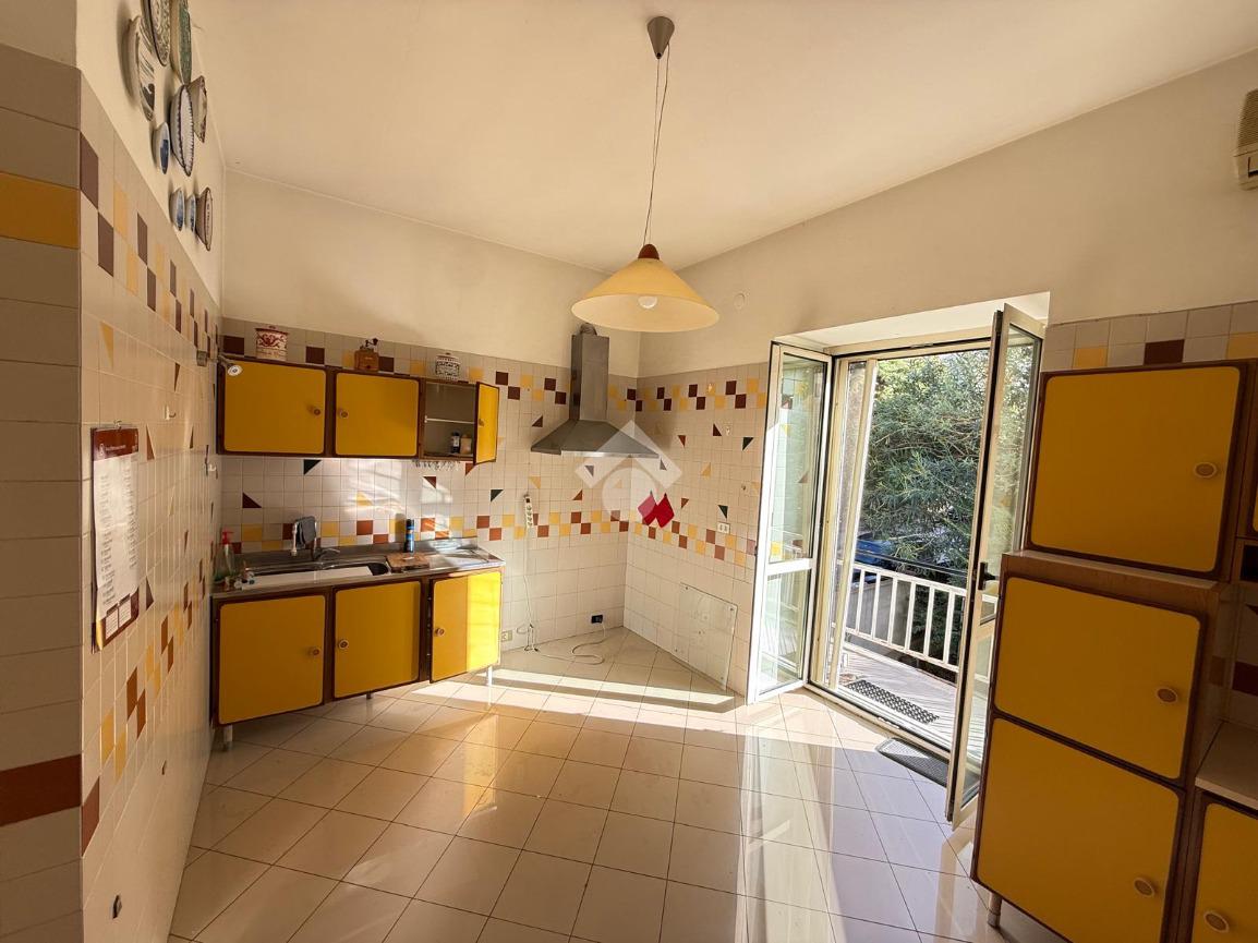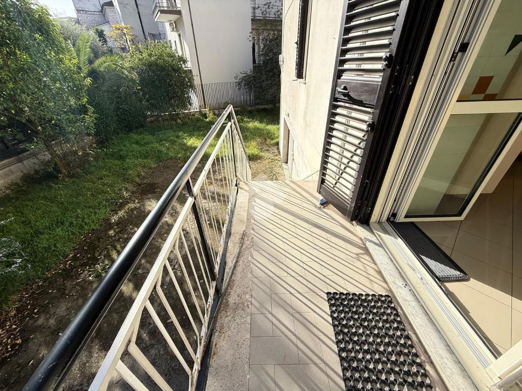 L'immobile offre un'ampia sala, una cucina abitabile con balcone, due camere da letto matrimoniali, due bagni, un posto auto, una cantina ed un garage. Dotato di doppio ingresso, uno condominiale e l'altro indipendente, di aria condizionata e con possibilità di realizzare una terza camera.