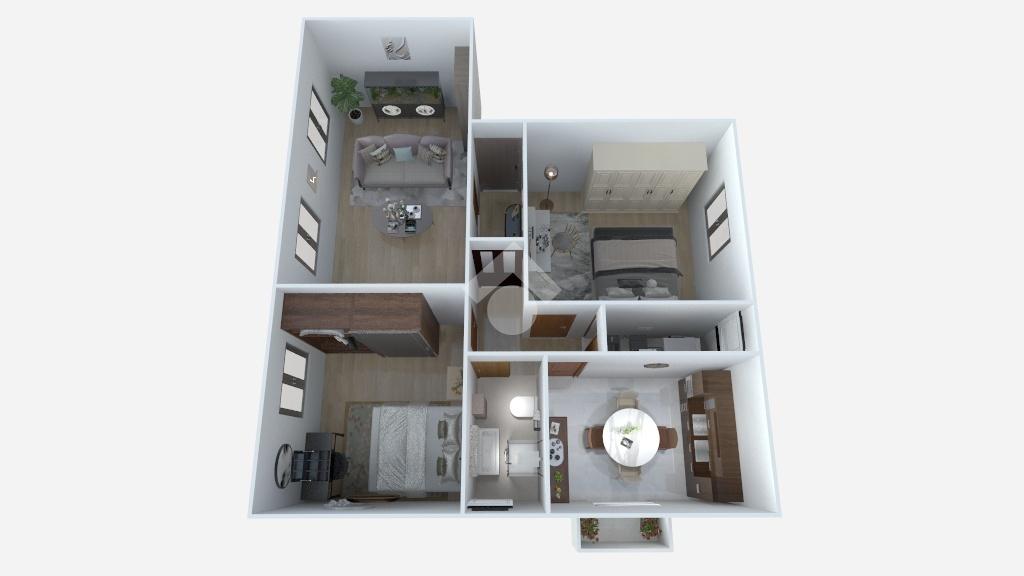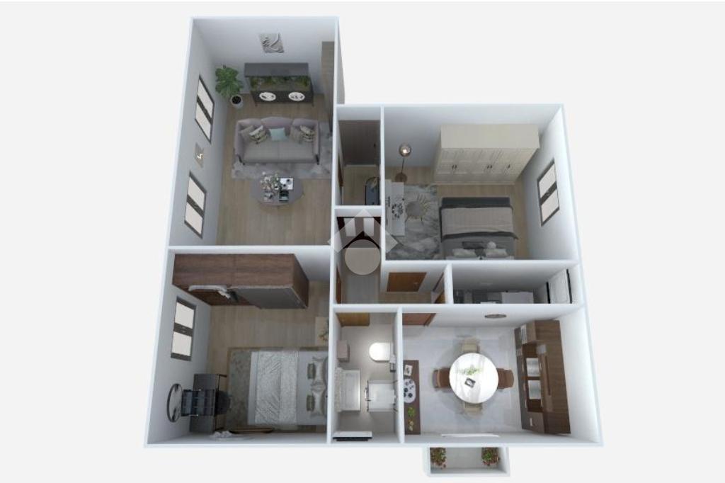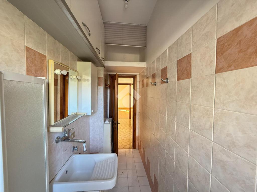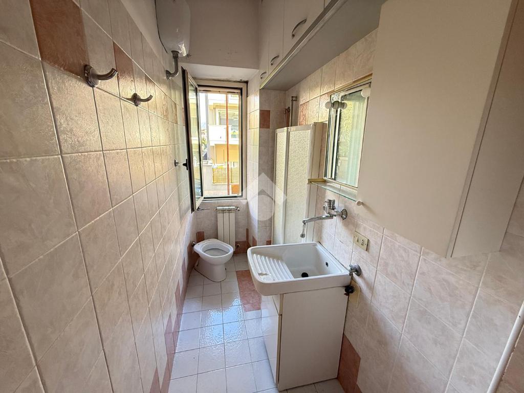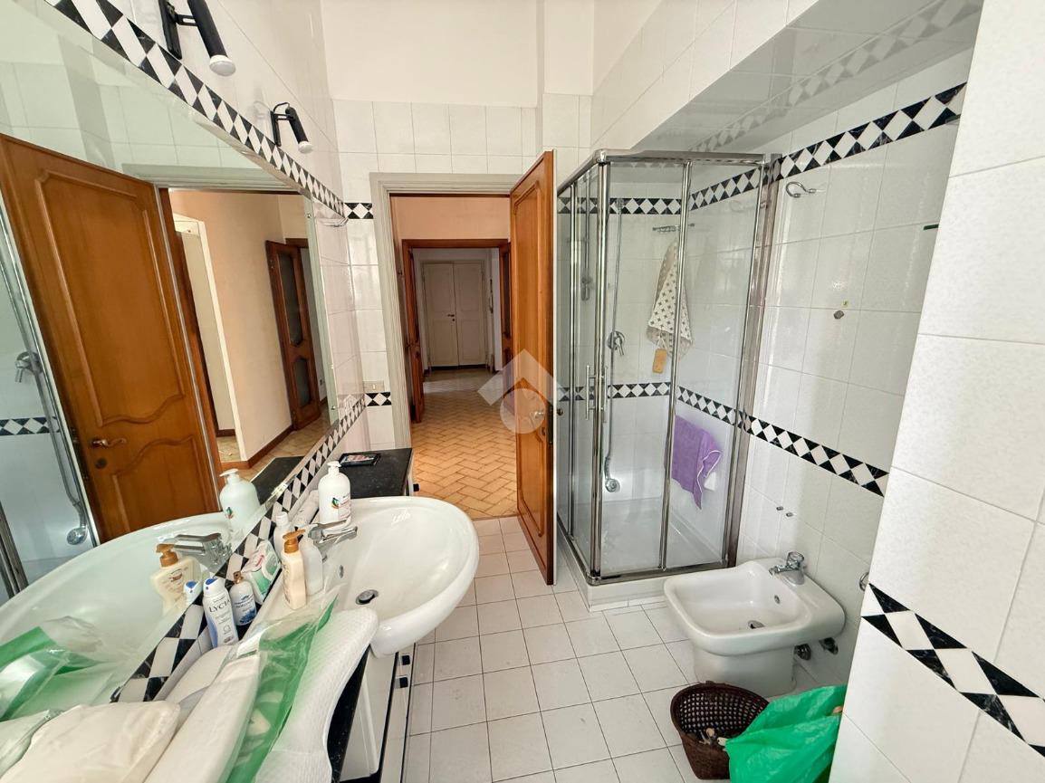 L'immobile offre un'ampia sala, una cucina abitabile con balcone, due camere da letto matrimoniali, due bagni, un posto auto, una cantina ed un garage. Dotato di doppio ingresso, uno condominiale e l'altro indipendente, di aria condizionata e con possibilità di realizzare una terza camera.