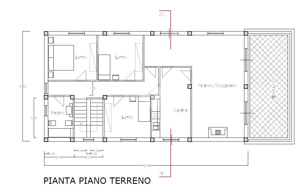 L'immobile è di circa 280 mq, costruito in cemento armato e con tetto già ultimato. Si sviluppa su due livelli, il piano terra di circa 140 mq con destinazione d'uso 'abitazione' ed il piano seminterrato anch'esso di circa 140 mq con destinazione d'uso 'garage e cantina'.
