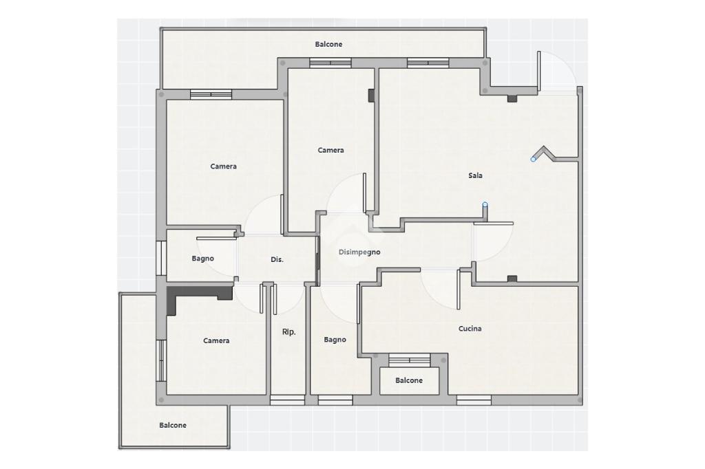 L'immobile offre spazi ben distribuiti, funzionali e lumisosi. E' composto da ingresso su un'ampissima sala con camino, una cucina abitabile, tre camere matrimoniali, due bagni, un ripostiglio e posto auto. Interamente balconato.