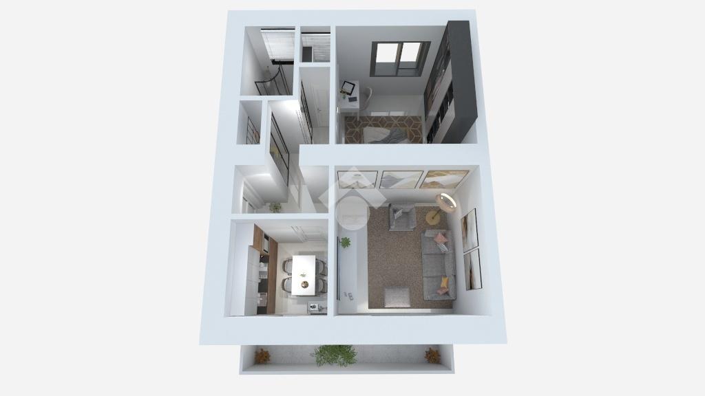 L'immobile accogliente e funzionale è composto da ingresso, un cucinotto, una sala, un'ampia camera da letto, due bagni e balcone nella zona giorno. Incluso un comodissimo locale di circa 25 mq posto al piano terra del fabbricato ad uso deposito/cantina.