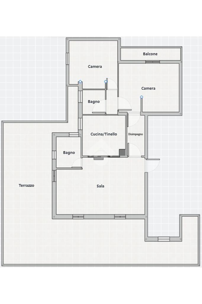 L'appartamento è composto da ingresso, ampia sala, due camere, con possibilità di realizzarne una terza, due bagni ben rifiniti, uno nella zona giorno e l'altro nella zona notte, un balcone ed un terrazzo che prende due lati dell'appartamento.